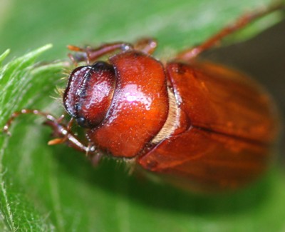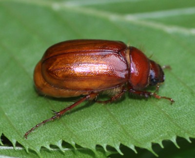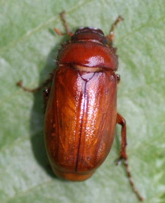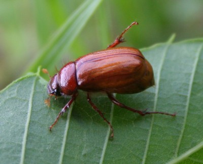 ・全体に茶褐色で、細長いコガネムシ。山間部で普通に見られる。
