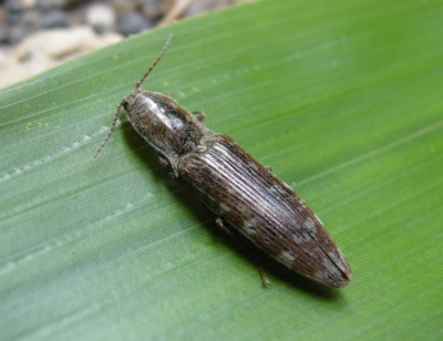 本種と良く似たものには幾つかあり、少し大きい「シモフリコメツキ(A. pruinosus)」は、前胸背の中央に縦溝があることで見分けるそうだが・・・はて ? ? ? ・・・少し自信なし。 |