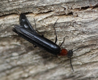 ・雄は全体に黒色、雌は前胸背板が赤色をしている。