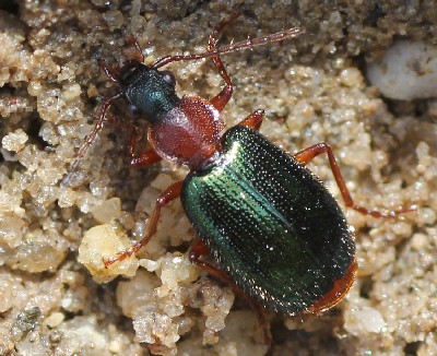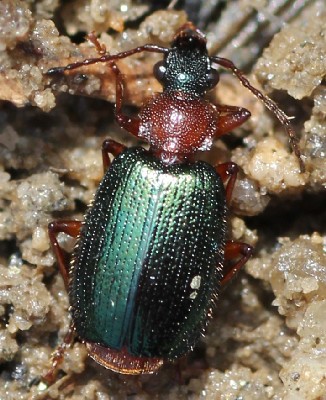 | ・アトキリゴミムシの仲間。樹上性だが、植生の根ぎわなどでも見つかる。 |