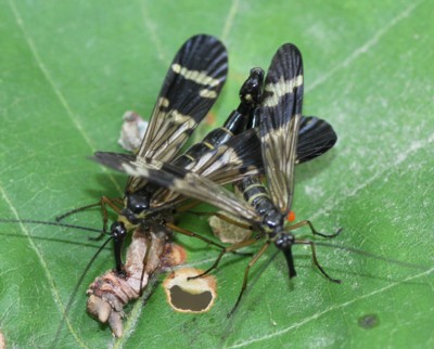 ・最も普通に見られるシリアゲムシの仲間で、雄は腹部の先端をサソリのように曲げる。
