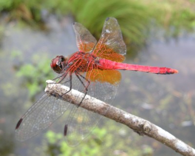 | ・「ショウジョウトンボ」に似るが、本種の胸の側面には2本の太い黒条がある。 |