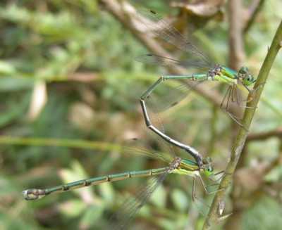 | ・「アオイトトンボ」を少し長くしたようなトンボ。アオイトトンボと違って、成熟しても白い粉を吹かない。 |