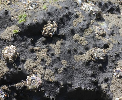 干潮時の岩の上、「ダイダイイソカイメン」同様、たくさんあるのですが色が悪いので目立ちません。 |