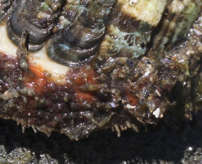 | ・全体が卵円形で、殻板一枚一枚は幅広い。肉帯上には剛毛があり、内側は暗赤色。 |