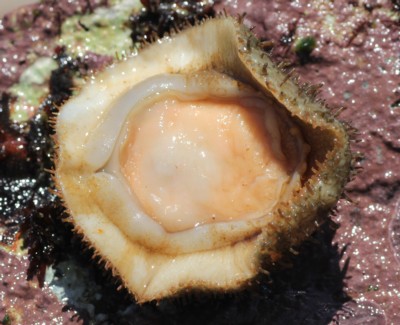 「ヒザラガイ」や「ケハダヒザラガイ」よりも深い所に生息するため、見つける機会は少ないと思います。大潮の干潮時、たった一つだけ見つけました。