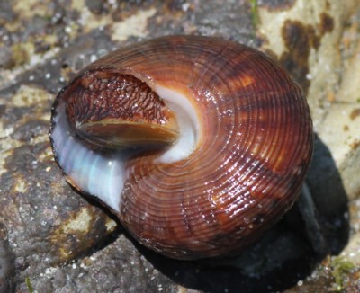 ・付着物のない円錐形の殻をもつ美しい巻き貝。潮間帯の岩礁に普通に見られる。