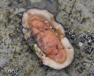 「ヒザラガイ」漢字では「膝皿貝」、地盤から剥がすと腹側に強く曲がり丸まることからだそうですが、引き剥がしても曲がりませんでした。他にも「火皿貝」とか「石鼈貝」と言うのもありました。