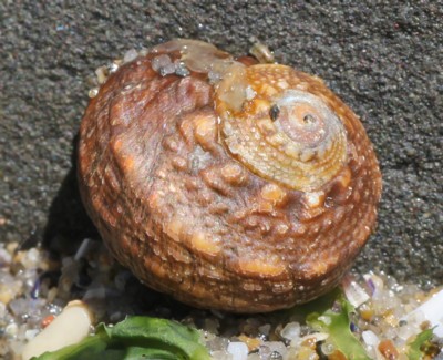 表面に藻が付いて模様が良く解らないので、次は綺麗にして撮りたいと思います。この「カイゴロモ」と言う緑藻は本種の殻上のみに生育するとの事、、その理由は解っていないそうです。