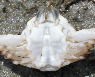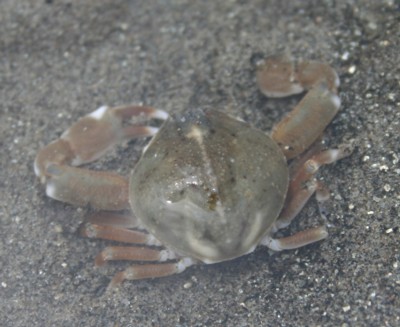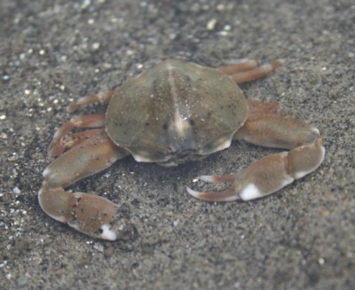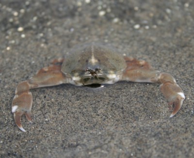 ・干潟や内海の砂浜で普通に見られるカニ。横歩きではなく、前後に歩く。