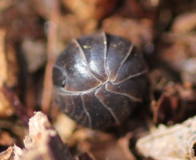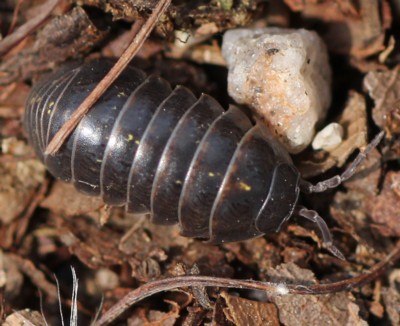 ・全体に暗褐色〜紫黒色で光沢があるダンゴムシ。最も普通に見られる。
