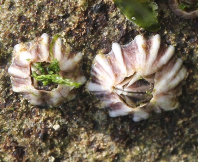 ・内湾の潮間帯の岩や護岸、桟橋などで普通に見られるフジツボ。