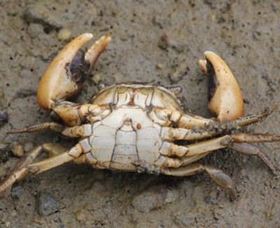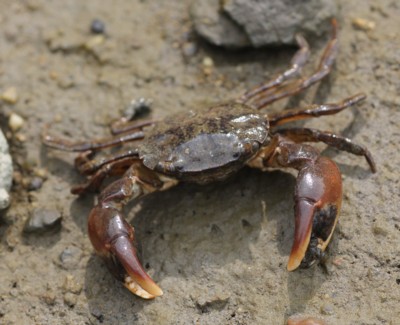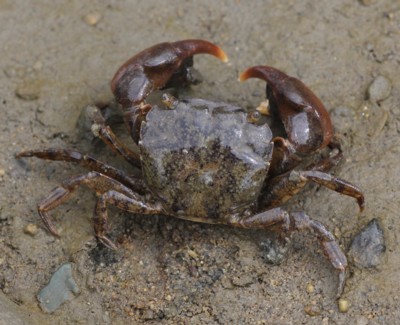 ・河口や内湾の潮間帯の転石下に生息するモクズガニの仲間。