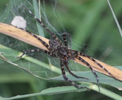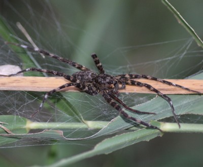 写真は頭胸部の両側に条がない雌の個体だと思います。個体変異もかなりあるようです。脚先から脚先まで、10cm近くありました・・・日頃、小さいものばかりを相手にしていると、この大きさには驚いてしまいます。