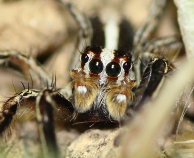| ・頭胸部〜腹部の中央に黄白色の縦条がある大型のハエトリグモ。 |