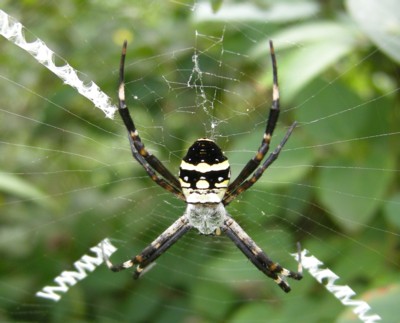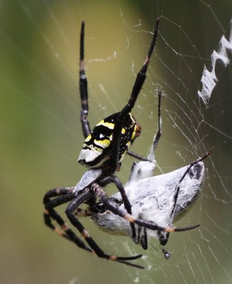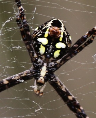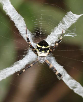| ・里山〜山地に生息するコガネグモの仲間。網の中央部にX字状のかくれ帯を付け、その中心に止まる。 |