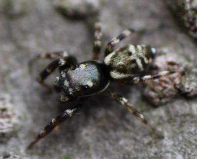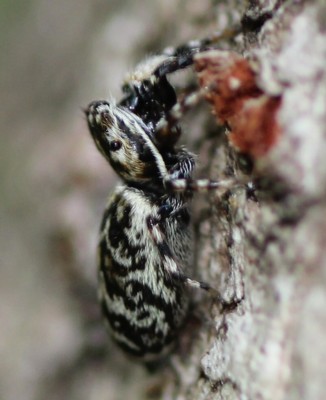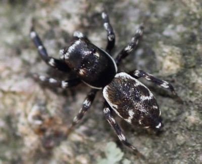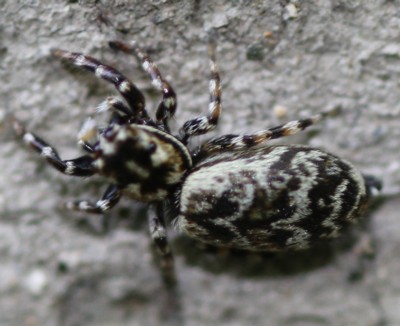 | ・腹部にイナズマ状の斑紋があるハエトリグモ。 |