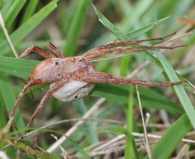 | ・平地〜山地に広く生息する大型のクモ。池や沼の周囲、水田、草地、林の周囲などに見られる。 |