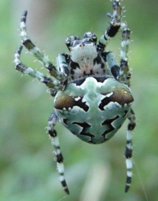| ・緑色の身体に黒色の斑紋がある美しいオニグモ。山地に生息する希少種の一つ。 |