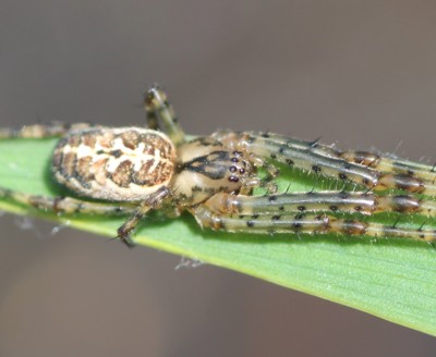 | ・頭胸部にあるメガネ状の小斑が特徴のクモ。夏の土用の頃に多く見られることから「ドヨウグモ」の名がある。 |