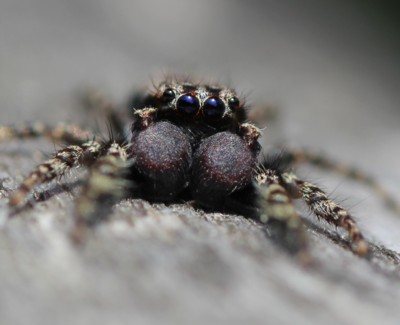 他のハエトリグモよりも大きいグローブをはめている(雄)。と言うか、ここまで大きいと何かに刺されて腫れ上がったよう・・・ |