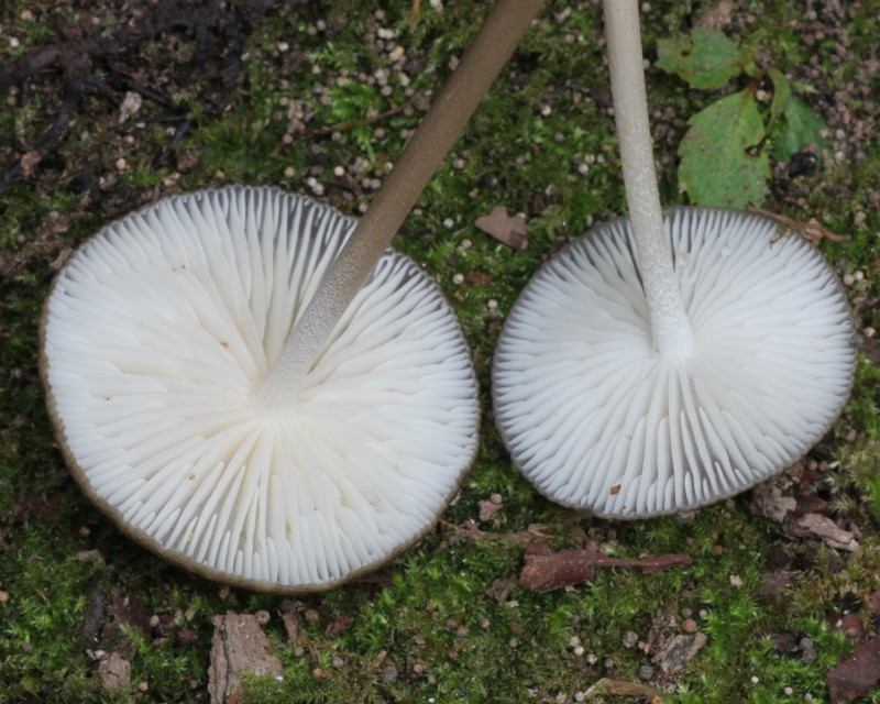 | ・柄/地上部は長さ5~12cmで傘とほぼ同色。太さ4~6mmで根元はややふくらみ、再び細まりながら地中の材につながる。 |