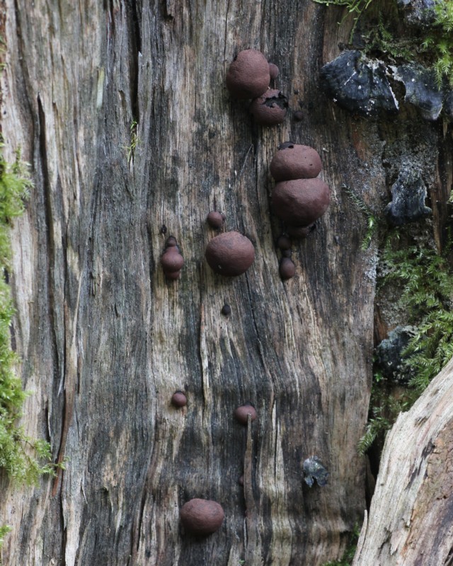 | ・子座/半球形〜不規則なコブ状で、赤黒色〜黒褐色。 |
