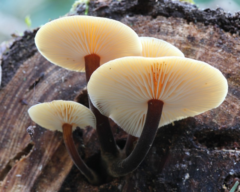 | ・柄/径2〜8mmでほぼ上下同径。表面は黄褐色〜暗褐色、上部は淡色、密に短毛に覆われビロード状。軟骨質。 |