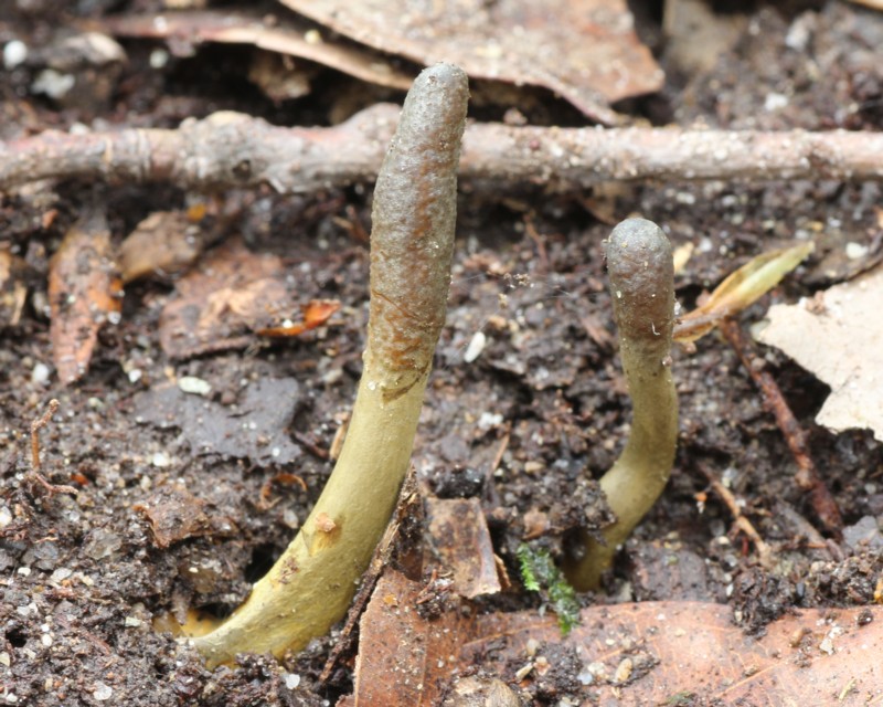 | ・頭部/長さ0.5〜3cm、径0.3〜1cmの棍棒状、紡錘形、または卵形。幼時は黄緑色、成熟するにつれオリーブ褐色からしだいに黒色になる。 |