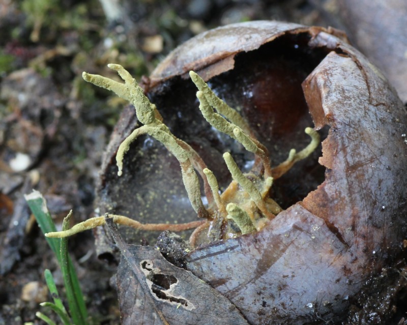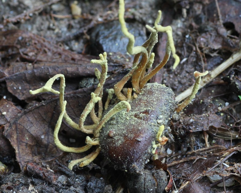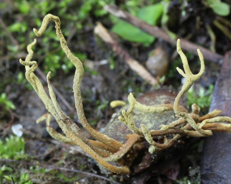| ・分生子柄束/細い鹿の角状で表面は粉状、黄色を帯びる。 |