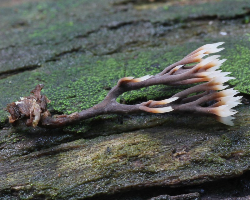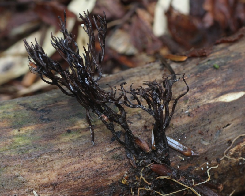 | ・子実体/高さ20mm内外、柄の径1mm内外で数回分岐を繰り返して樹形〜エダサンゴ型になる。 |