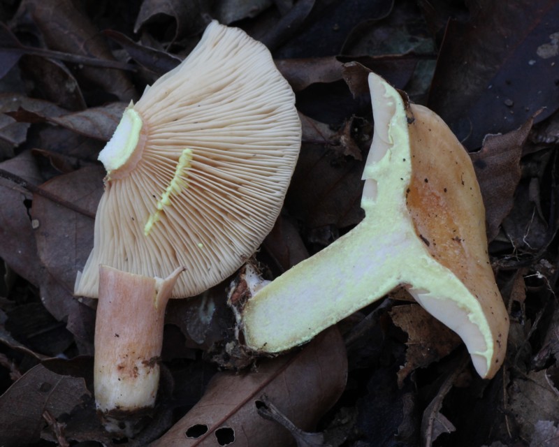 | ・子実体/傷つくと白色乳液が分泌され、空気に触れると黄色に変わる。 |