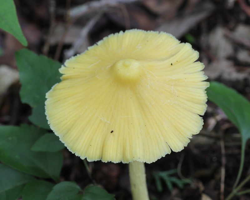 | ・傘/鐘状〜円錐形、中心に鉛筆の芯状の突起がある。表面は黄色で湿ると長い条線をあらわす。 |