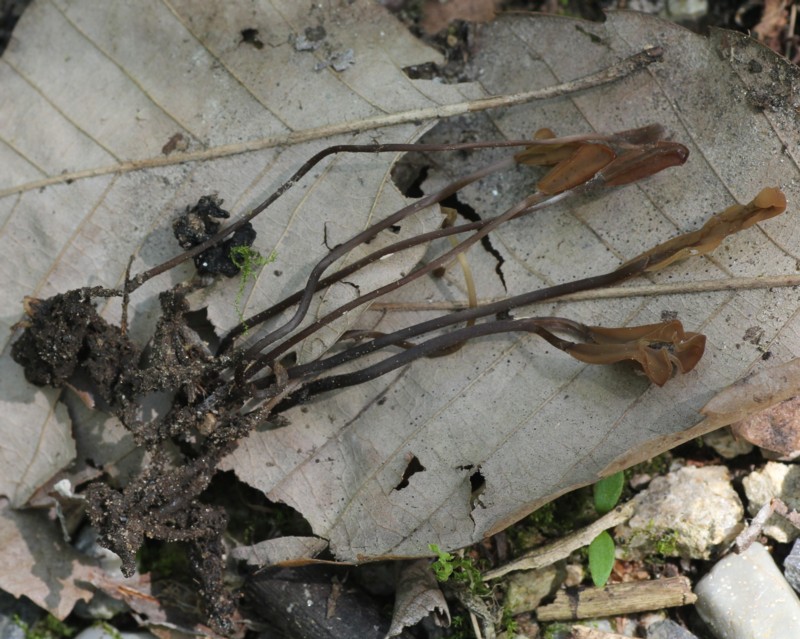 | ・子嚢果/淡褐色〜褐色、頭部と柄部からなり、1個の菌核から1〜数個が生じる。 |