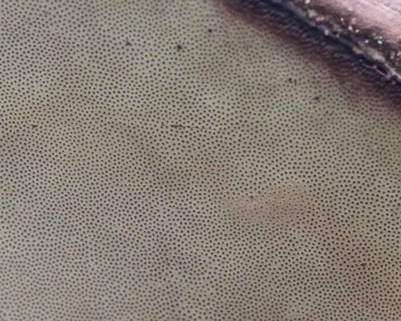| ・管孔/孔面は乳白色〜白色、こすると褐色に変化する。孔口は円形で微細(4〜5/mm)。 |