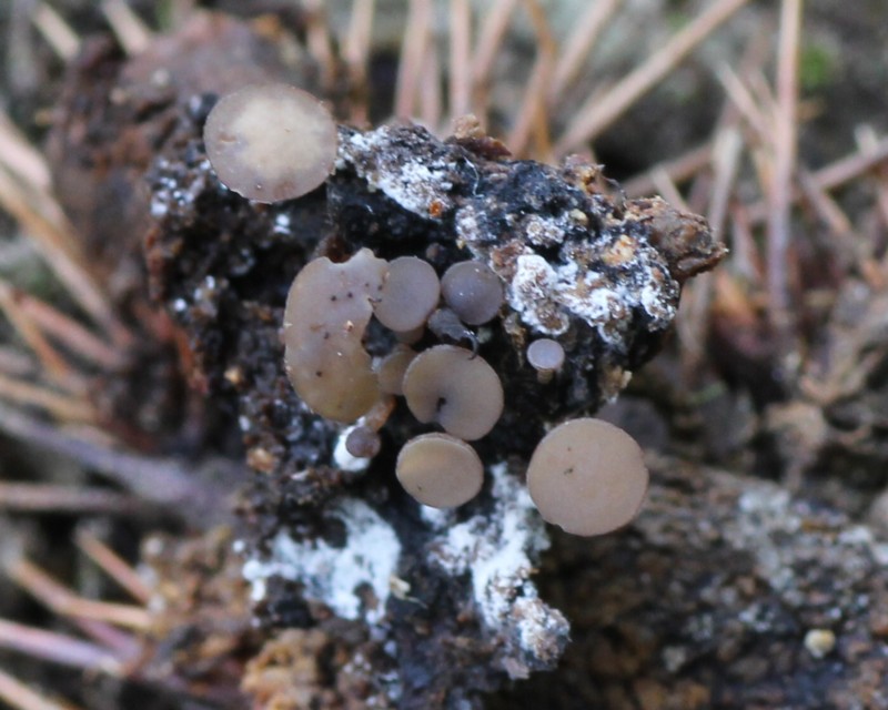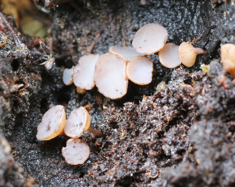 | ・子嚢盤は椀形で、のちほとんど平らとなり、ときに中央がわずかに盛り上がる。 |