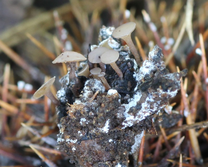 類似種に「アメリカクリノイガワンタケ(Lanzia americana = Ciboria americana)」があり、もしかしたらそちらの方かもしれません。両種ともほとんどの図鑑には載ってなく、ネット検索してもほぼヒットしないので詳しい事は解りませんでした。解説は『原色日本新菌類図鑑(U)/保育社』を参考にしました。なお、当サイトは顕微鏡観察は行っていません。 |