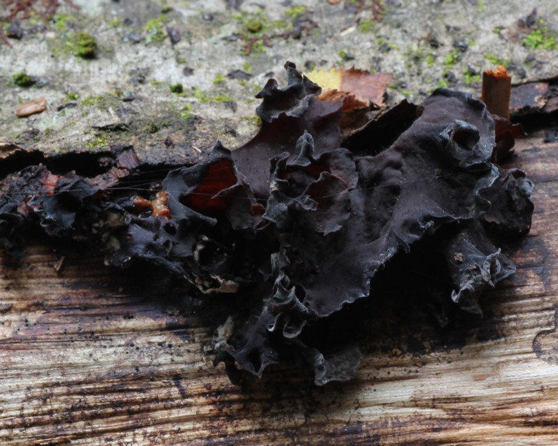 | ・子実体/花びら状裂片が重なり合って八重咲きの花状になる。色は黒色〜暗褐色でゼラチン質。 |