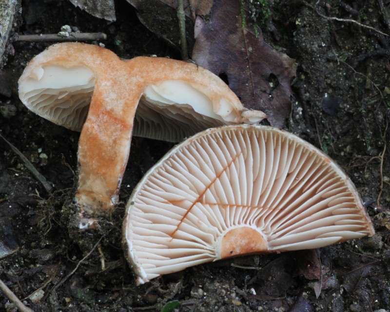 切断するとすぐに赤色になりますが、黒くなるには少し時間が掛かります。類似種の「ニセクロハツ」は赤くなるだけで黒くはならない(かなり時間がたてば多少灰色かがることがある)との事。また、「クロハツモドキ」は本種のように赤変後に黒くなるが、ひだが密なので見分けられるようです。・・・まだ、この二種は見たことはありません。