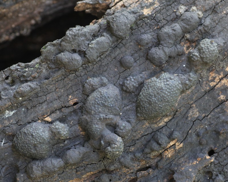 | ・子座/黒色で半球形〜不規則なイボ状。表面は半埋生の子嚢殻が密生しキイチゴの実のように見える。 |