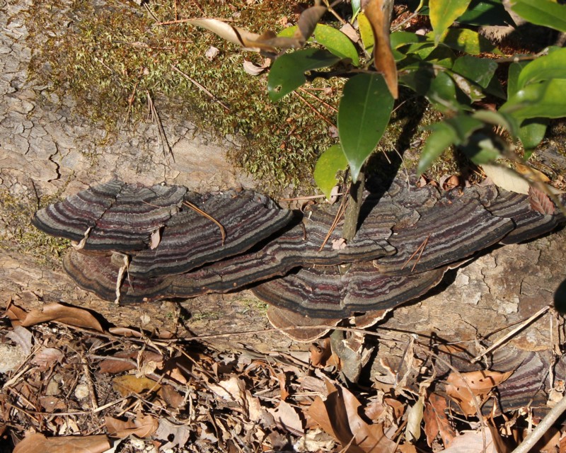上の写真は同じ個体です。二か月も経つと表も裏も色が変わり、ずいぶんと雰囲気が違ってきます。このてのキノコは個体によって色んな色彩があるので判断に迷う所です。 |