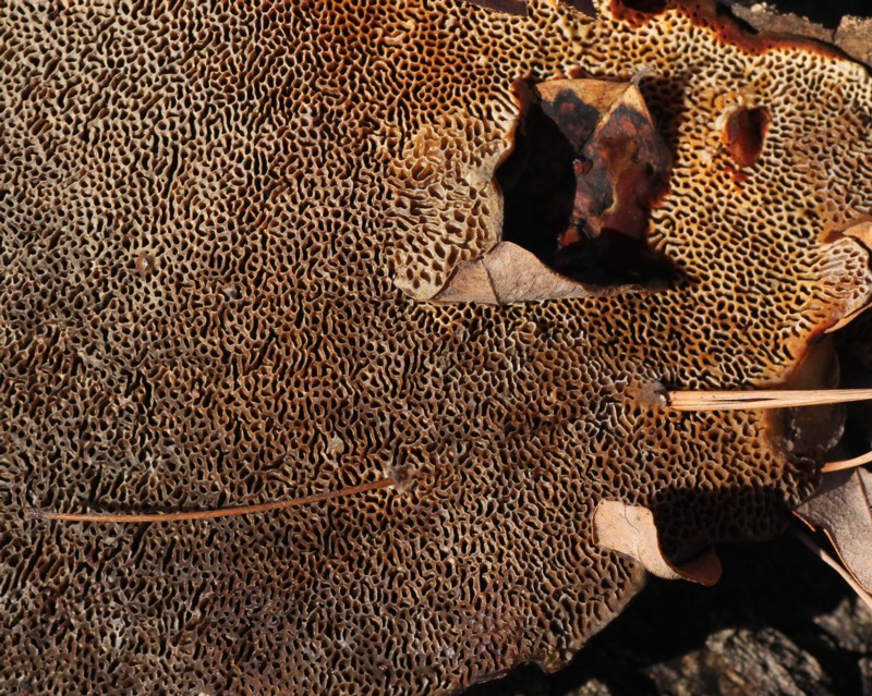 | ・管孔/孔長は2〜10mmで黄土色〜黄褐色。孔口は円形〜多角形で1〜2個/mm、初め淡色で古くなると煤色になる。。 |