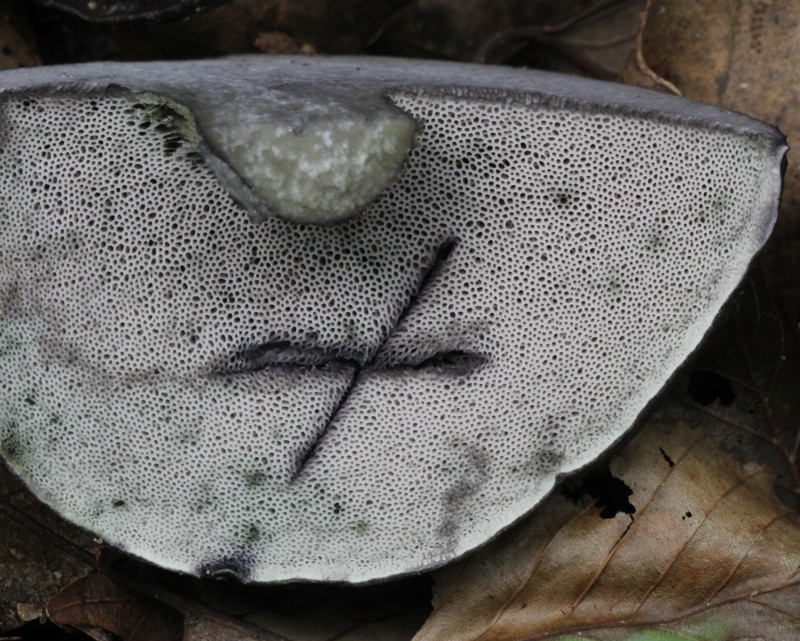 | ・管孔/上生〜離生で帯紫灰色。孔口は小角形で傷つくと黒変する。 |