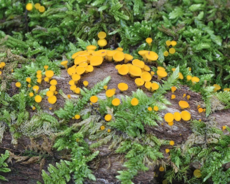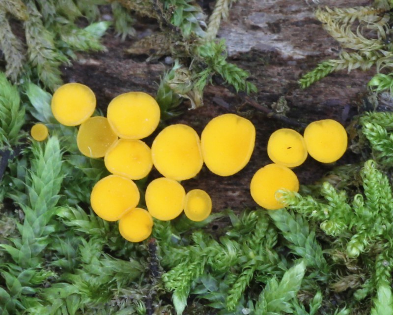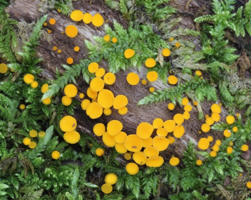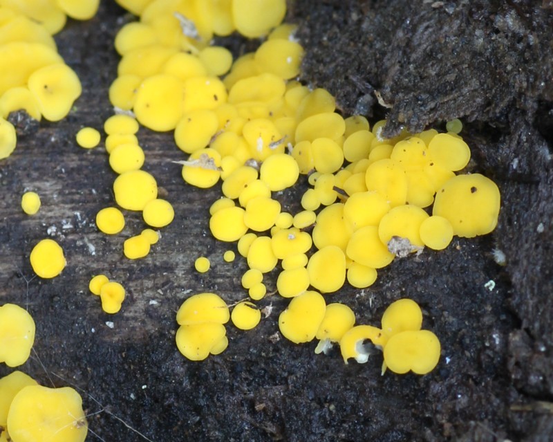 | ・子嚢盤/径約2mmのこま形~椀形で、全体に明るい黄色~硫黄色。 |