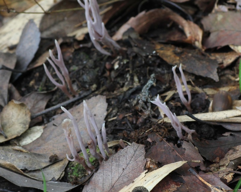| ・子実体/全体に薄いスミレ色で、単一状~不規則に分岐したものまで様々ある。 |