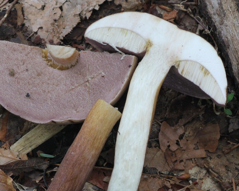 「ニガイグチ(T. felleus)」は、傘が黄褐色〜オリーブ灰色で、帯黄色の柄の表面全体に明瞭な網目模様があり、本種よりも稀な種のようです。まだ見たことはありません。 |