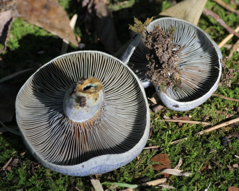 | ・ひだ/直生〜やや垂生。やや密。藍青色〜青色、のち黄緑色に変わる。 |