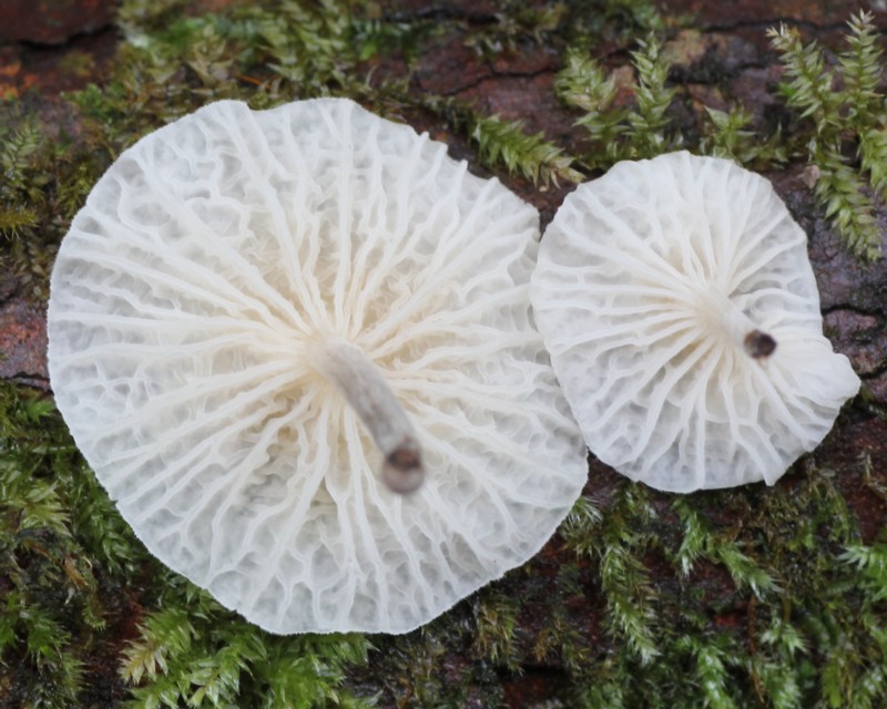 | ・ひだ/直生、白色、幅狭く疎。ときに分枝し互いに脈で連絡する。 |