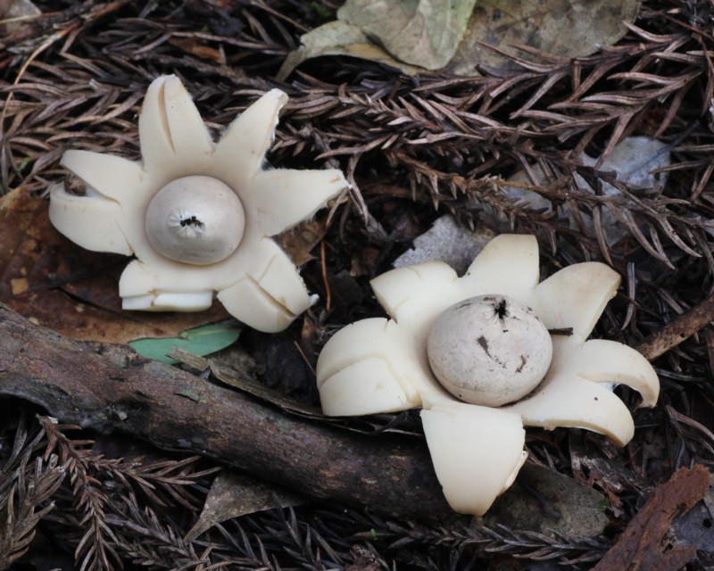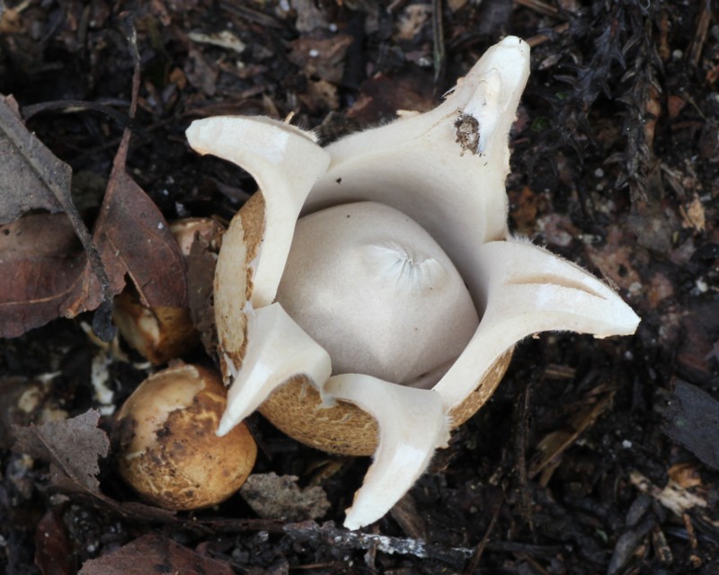 | ・成熟すると5〜9(12)片の星型に裂開し反転する。外皮の内側は平滑で白色、のち淡褐色→黄褐色となり薄くなる。 |