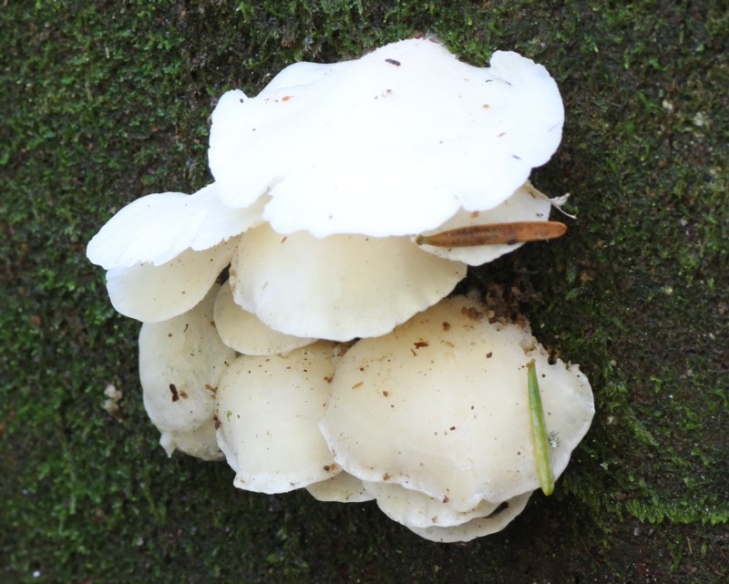 | ・傘/貝殻状→耳形〜扇形、あるいはへら形で、縁は内側に巻く。表面は白色で粘性はない。 |